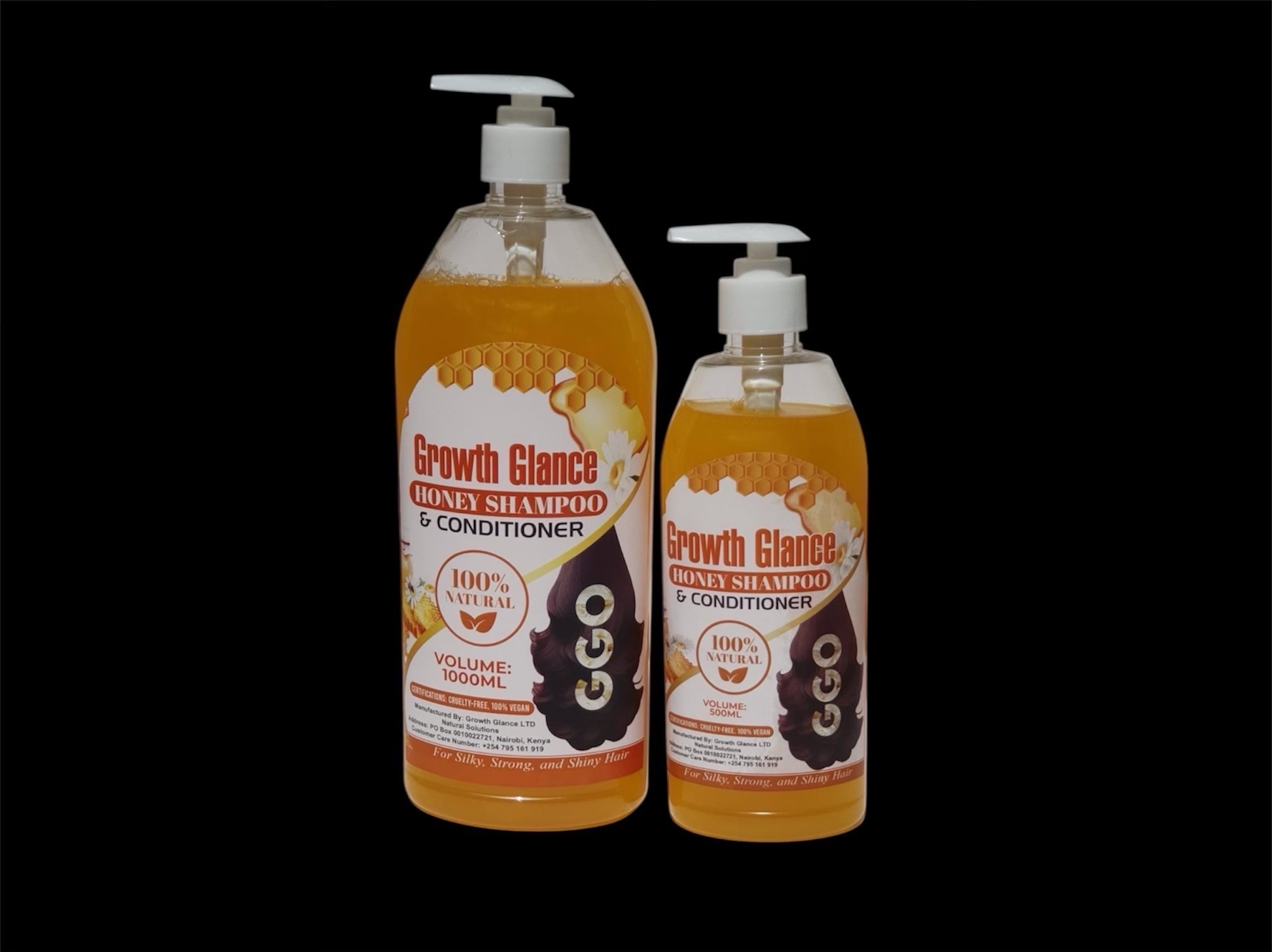 Honey Shampoo & conditioner available in both 1000ml and 500ml.
